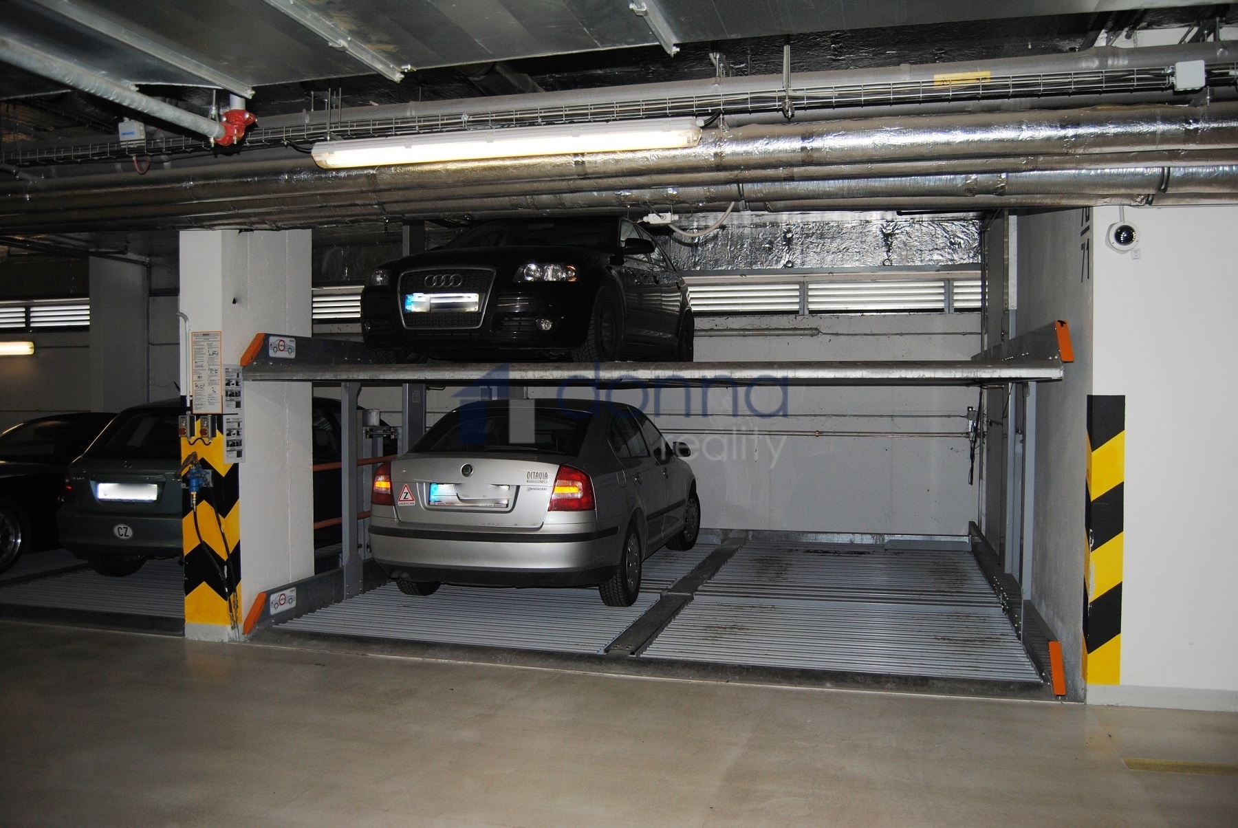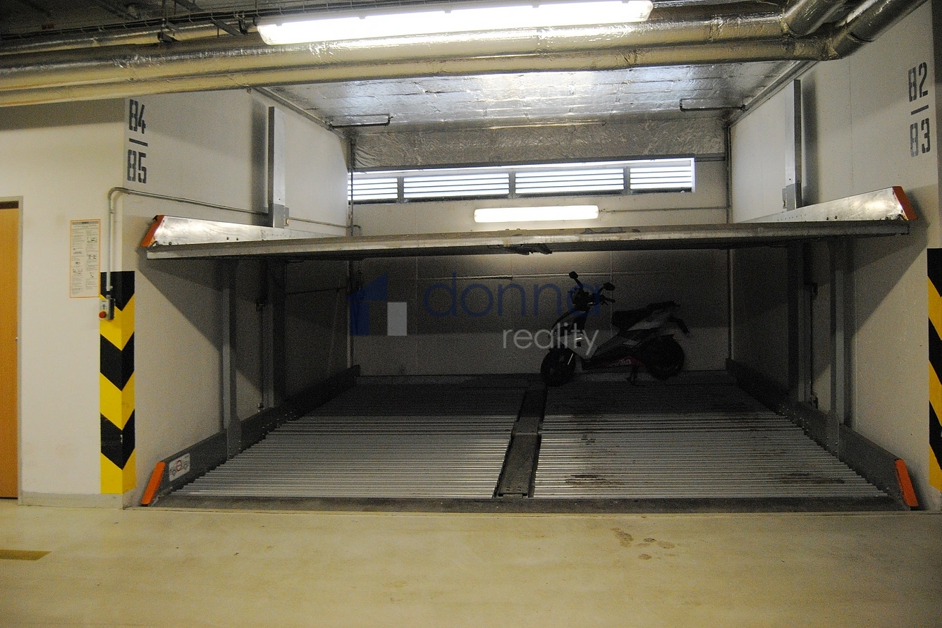 Nabízíme pronájem zakladačového garážového stání, horní místo, v domě v ulici Přípotoční, Praha 10 - Vršovice. Garážové stání 15m2, vjezd do garáží na čip. Cena za pronájem 2.500,-Kč/měsíčně, volné od 1.12.2025. Foto je ilustrační.
