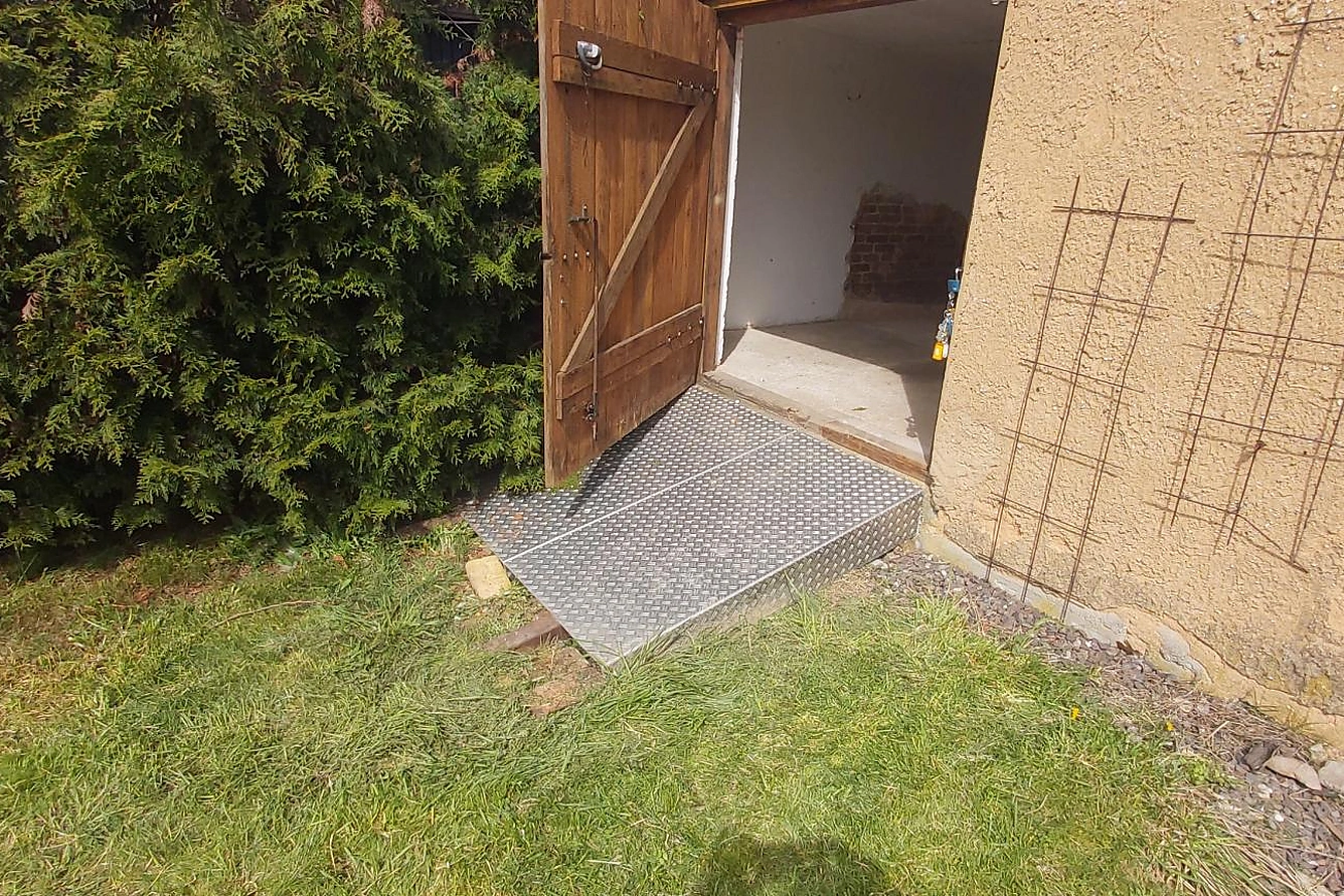 - do stavby je plynulý nájezd a má široká vrata např. pro vjezd či parkování čtyřkolky a pod.