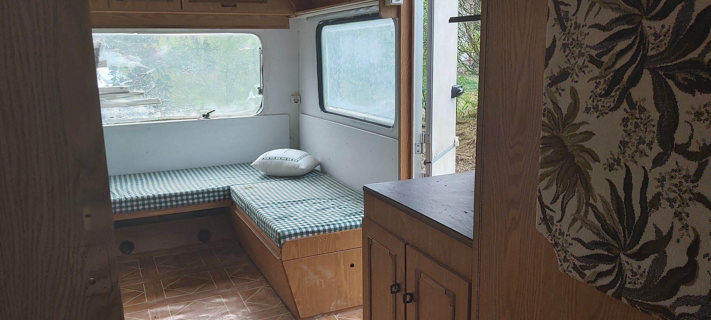 Cena, je výše měsíčního pronájmu za část zahrady a obytný přívěs dohromady.